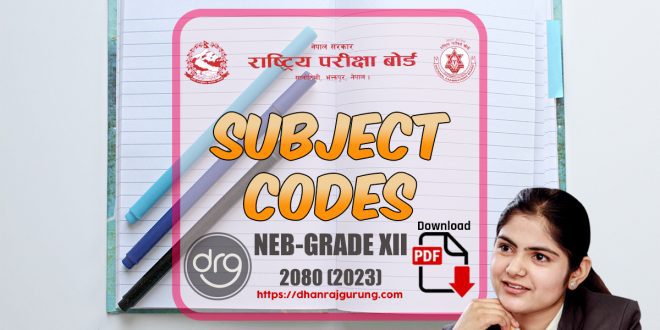 NEB Subject Codes of Class 12-XII 2079-2080.
